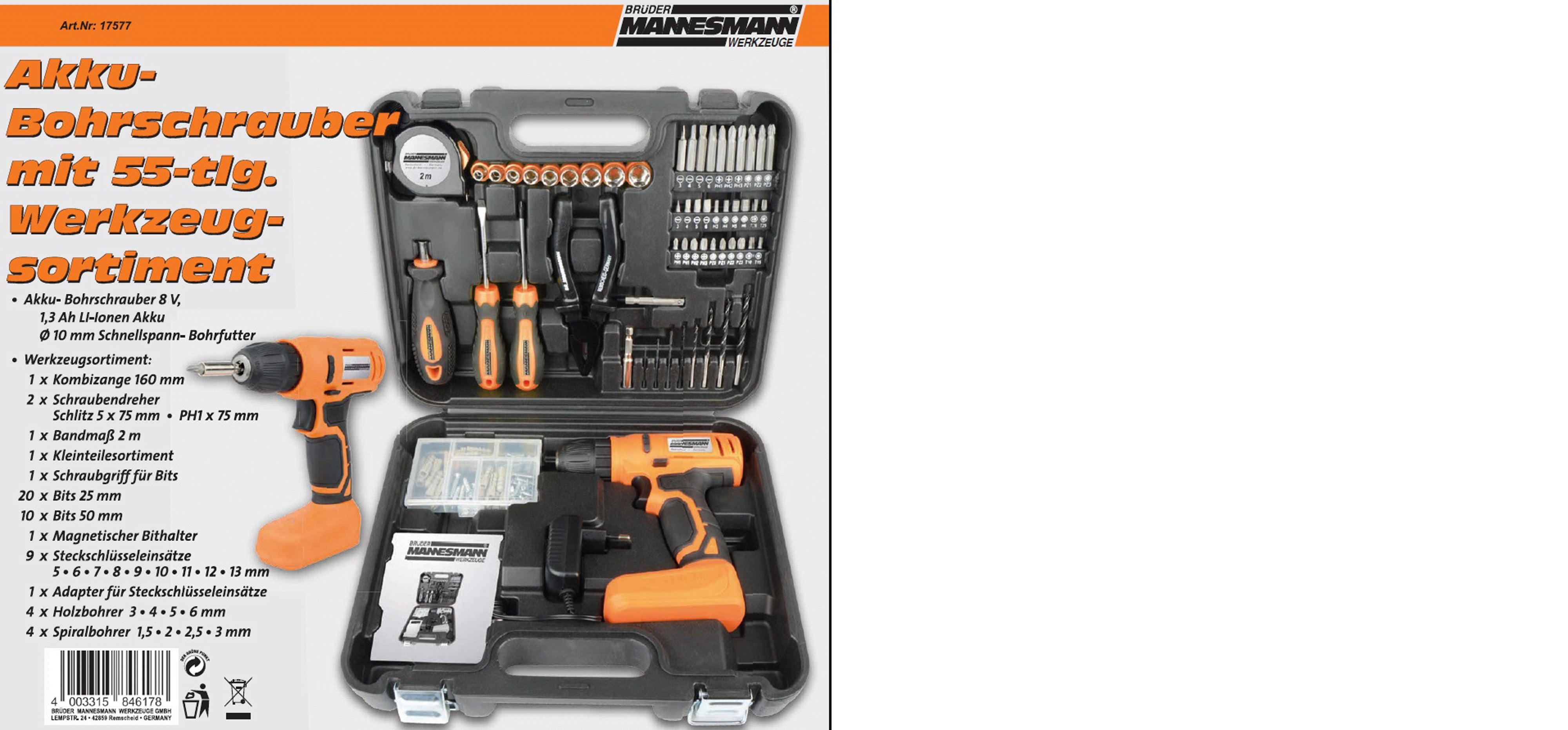 Akkubohrschrauber 8V mit 55-tlg. Werkzeugsortiment