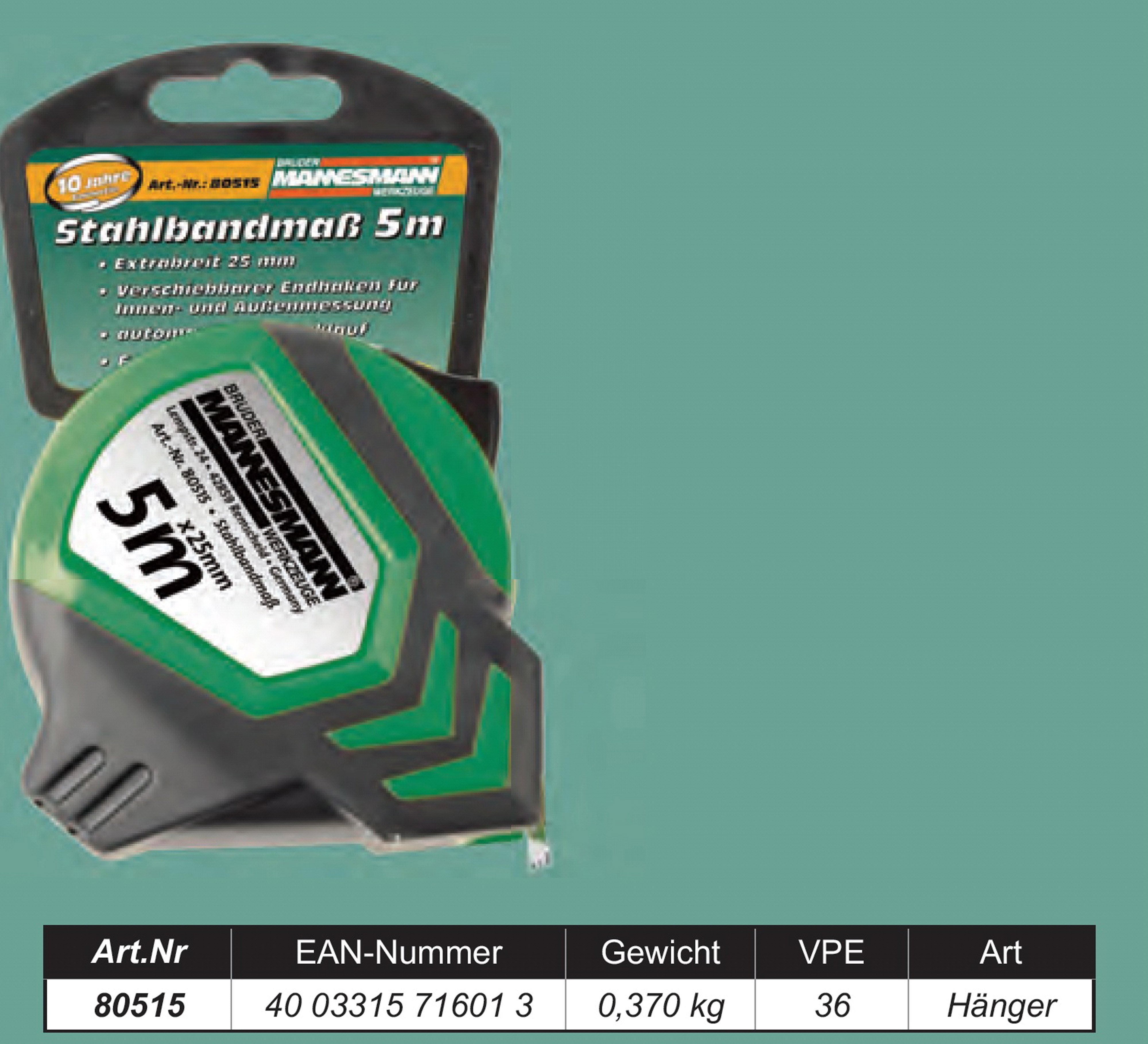 Startseite › Bandmass 5 m x 25 mm, Gehäuse grün/schwarz
