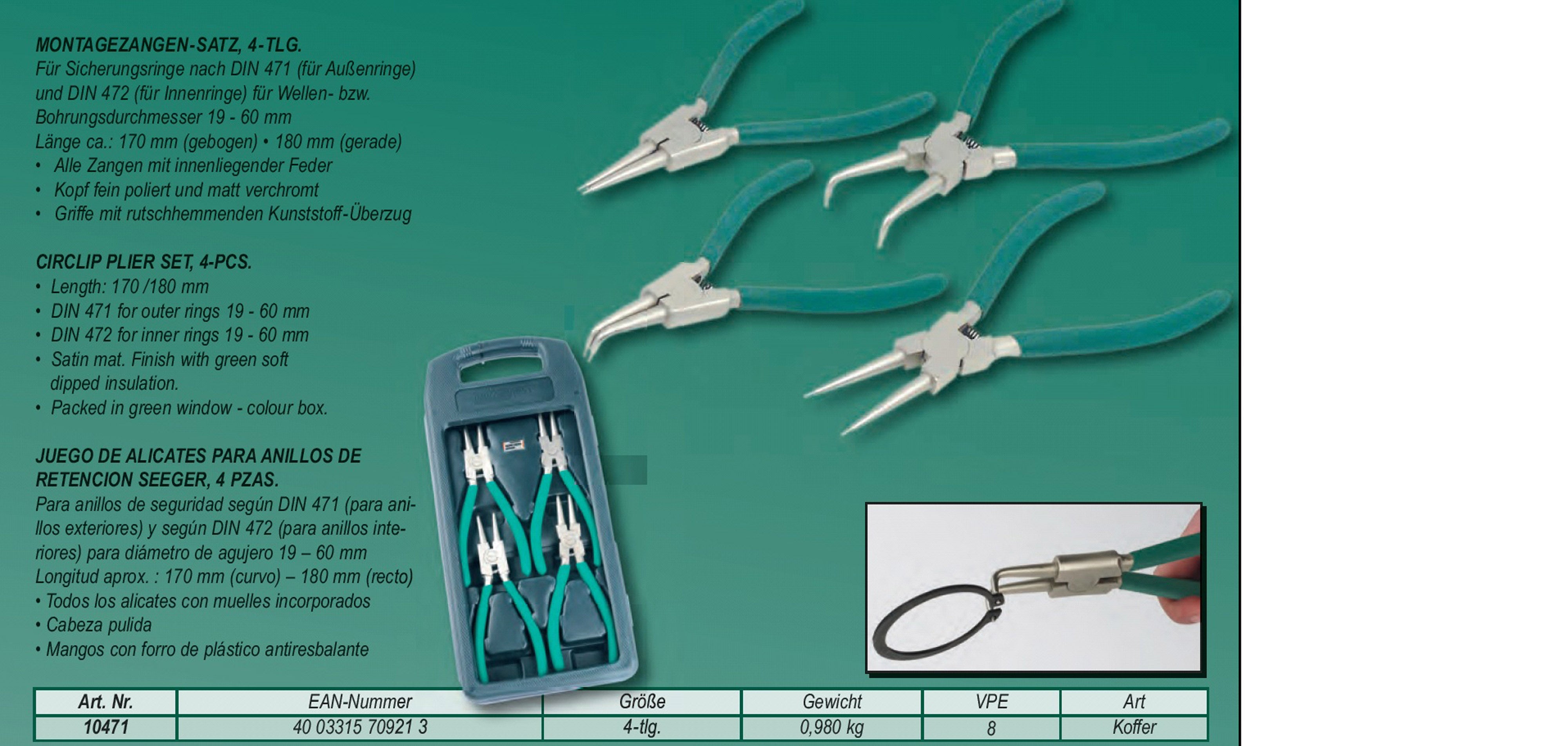 • Montagezangen-Satz, 4-tlg. im Koffer